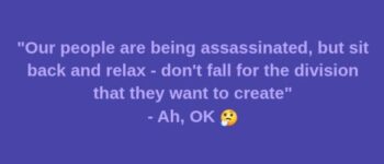 Interesting way of putting things from Mike Vincent here… “Our people are being assassinated, but sit back and relax – don’t fall for the division that they want to create” This posits the world as two factions. One acts, the other reacts. Or- refrains from acting. For simplicity sake let’s call the active group Leftists. […]
